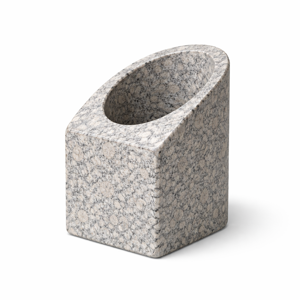The StoneCraft Tilt Wine Chiller is a sculpted stone holder designed to keep bottles naturally cool while adding a modern architectural touch to the table. Carved from solid natural stone, its angled cavity holds the bottle securely while the thick walls help maintain temperature longer than traditional holders.